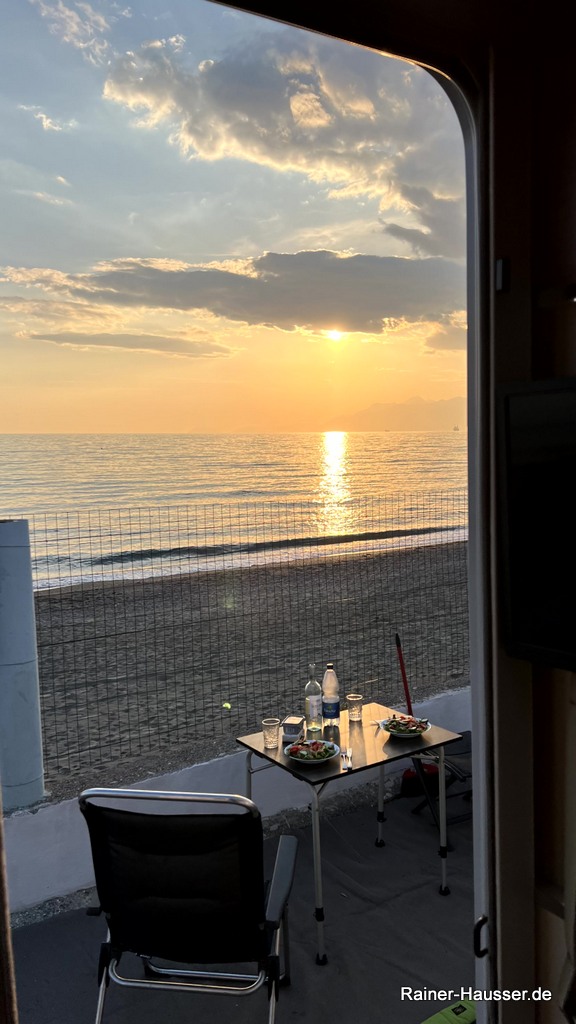 Jetzt geht es weiter nach Salerno. Die Straßen werden immer schlechter je weiter es in den Süden gheht. Wir haben Camping Lido Salerno gebucht. Um den Camping herum ist alles eher wie eine Müllhalde. Überall liegt Plastik und allerlei Abfall. Im Camping ist alles nicht mehr ganz neu aber gepflegt. Wir bekommen einen Stellplatz ganz vorne am Wasser. Meeresrauschen. Einzig der Flughafen von Salerno ganz in der Nähe macht zunächst Sorgen. Aber dar Flugplan beruhigt. Drei bis vier Flugbewegungen am Tag. Nichts früh am Morgen oder spät am Abend. Läuft.