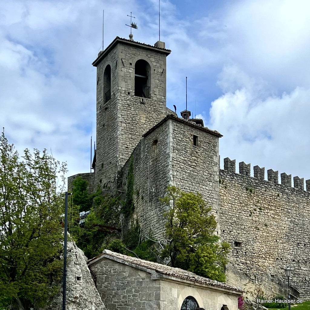 Der Stellplatz San Marino ist ohne Kosten. Dennoch gibt es Ver- und Entsorgung und WCs. Alles ist gepflegt. Wenige Gehminuten sind es zur Seilbahn. Eine gute Alternative zum Fußmarsch den Berg hinauf. San Marino ist natürlich voller Geschäfte um den Touris die Kohle aus der Tasche zu locken. Neben Krimskrams sind Marken Geschäfte und Waffengeschäfte reichlich vorhanden. Nach dem Rundgang gibt es den unvermeidlichen Spritz - gut eingeschenkt. Man merkt, daß hier wenig oder keine Steuern zu zahlen sind. Auch das Tanken lohnt hier. Abendessen im Malibu. Ich hatte vor Tagen schon einen Platz im Marina gebucht. Da gehts am nächsten Morgen auch hin.